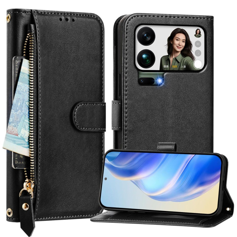Multifunktionale Brieftasche für das Xiaomi 17 Pro Max mit Reißverschlussfach und Kartenfächern. Hergestellt aus hochwertigem PU-Leder, bietet es umfassenden Schutz und Freihandunterstützung. Inklusive Magnetverschluss und Handschlaufe für eine sichere Tragbarkeit.
