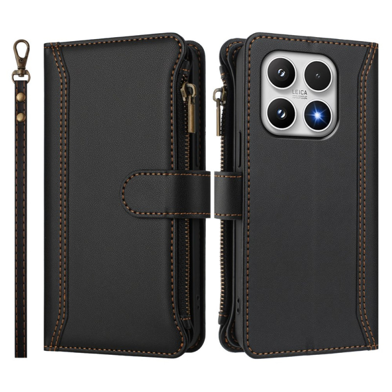 Vielseitige Ledertasche für das Xiaomi 17 mit 9 Kartenfächern, Reißverschluss, Standfunktion und Handschlaufe. Bietet umfassenden Schutz vor alltäglichen Stößen und Stürzen und ermöglicht gleichzeitig eine praktische Aufbewahrung für Karten, Geld und andere kleine Gegenstände.