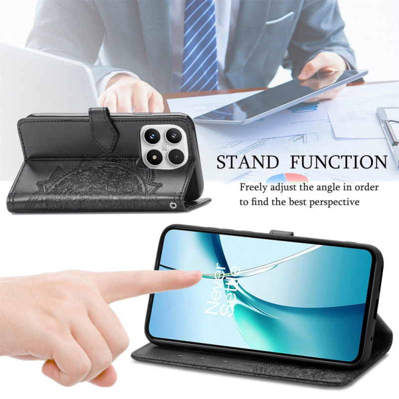 Elegante Brieftasche für das Xiaomi 17 mit geprägtem Mandala-Muster. Beinhaltet 3 Kartenfächer, 1 Geldscheinfach, integrierte Halterung und Handschlaufe. Sicherer Magnetverschluss. Premium-Schutz aus PU-Leder und strapazierfähigem TPU.