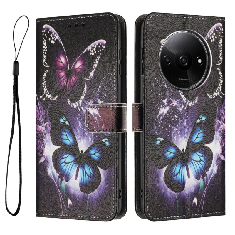 Entdecken Sie diese elegante Brieftasche für Xiaomi Redmi A3 / A3X / Poco C61. Das raffinierte Design mit den zwei Schmetterlingen vereint Schutz und Stil. Ausgestattet mit Kartenschlitzen, einem Bargeldfach und einem Klappständer.