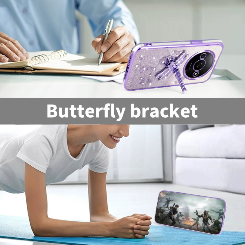 Schützen Sie Ihr Smartphone elegant mit dieser glitzernden Hülle, die mit ewigen Blumen und Strasssteinen verziert ist. Der integrierte Libellenhalter ermöglicht freihändiges Betrachten, während die erhöhten Ränder Ihre Kamera effektiv schützen.