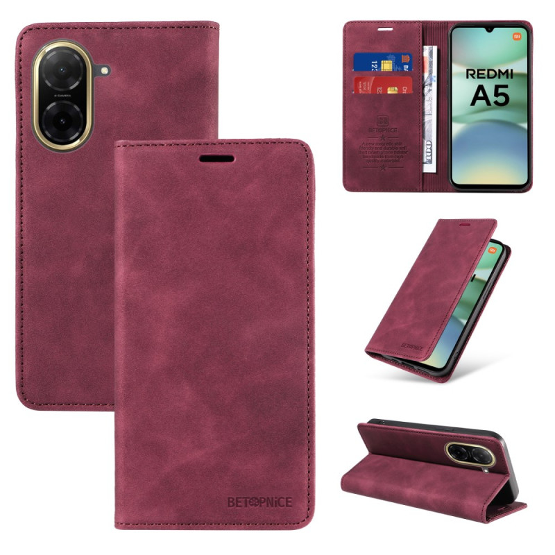 Entdecken Sie unser Portemonnaie aus Leder für das Xiaomi Redmi A5. Sie bietet umfassenden Schutz und verfügt über einen Magnetverschluss, eine RFID-Sperre, Kartenschlitze und einen integrierten Ständer.