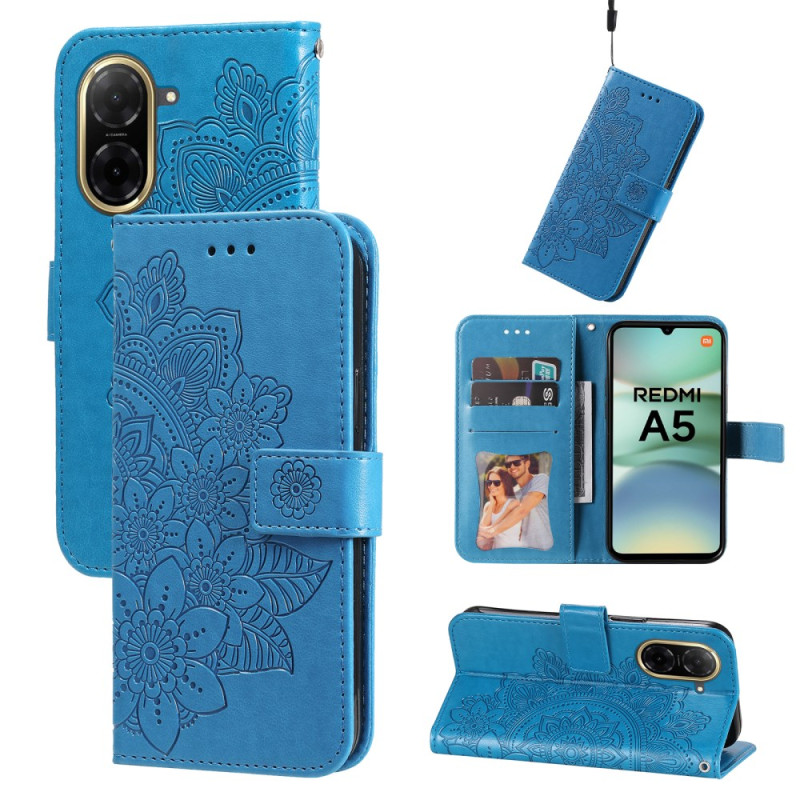 Elegante Brieftasche aus PU-Leder mit Blumenmuster für Xiaomi Redmi A5. Bietet doppellagigen Schutz, Kartenschlitze, eine Standfunktion und einen praktischen Trageriemen.