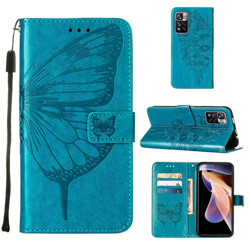Die Schmetterling Design Hülle schützt das gesamte Xiaomi Redmi Note 11 Pro Plus und kommt mit einem Lanyard.