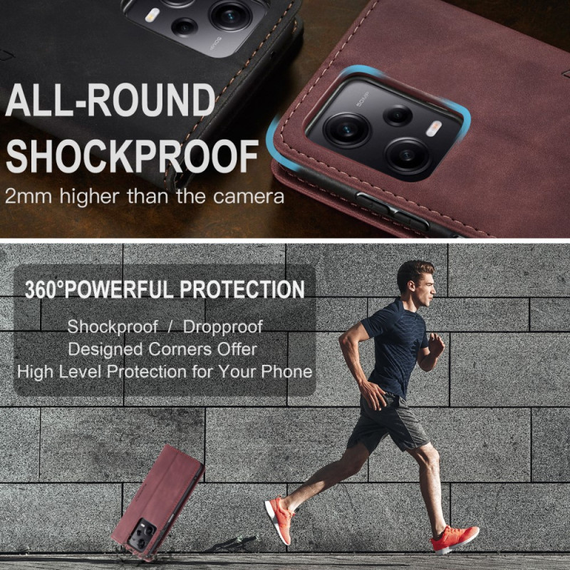 Dieses von CASEME entworfene Flip Cover ist der perfekte Schutz für das Xiaomi Redmi Note 12 5G/Poco X5 5G und dient als Brieftasche.
