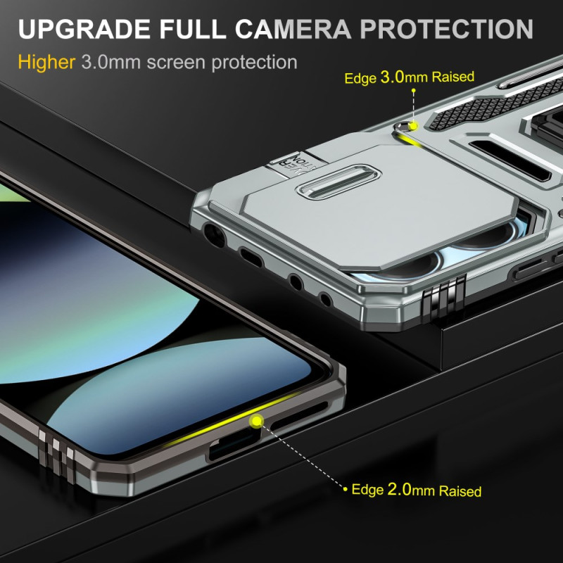 Entdecken Sie unsere fortschrittliche Schutzhülle für das Xiaomi Redmi Note 14. Mit einem verstellbaren Ständer, einem gleitenden Schutz für die Linse und einem robusten Design aus PC + TPU bietet sie maximalen Schutz vor Stößen und Stürzen.