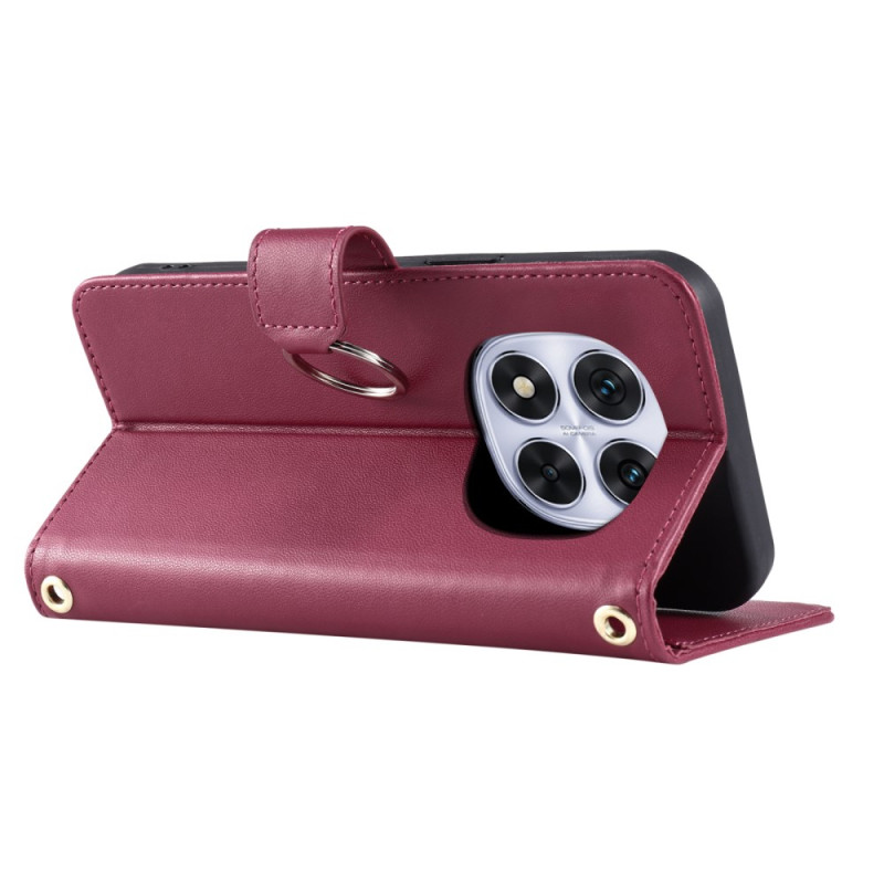 Elegante Hülle aus PU-Leder und TPU für Xiaomi Redmi Note 14 Pro 4G. Anspruchsvolles Design mit Rautenmuster, Ringschnalle und vielseitigen Funktionen.