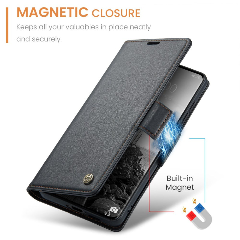 Entdecken Sie das CASEME Wallet Case, das Eleganz und Praktikabilität vereint. Mit seinem fortschrittlichen RFID-Schutz, den drei Kartenfächern und dem verstellbaren Halter bietet dieses Etui aus strukturiertem Leder umfassenden Schutz für Ihr Smartphone und erleichtert Ihnen gleichzeitig den Alltag.