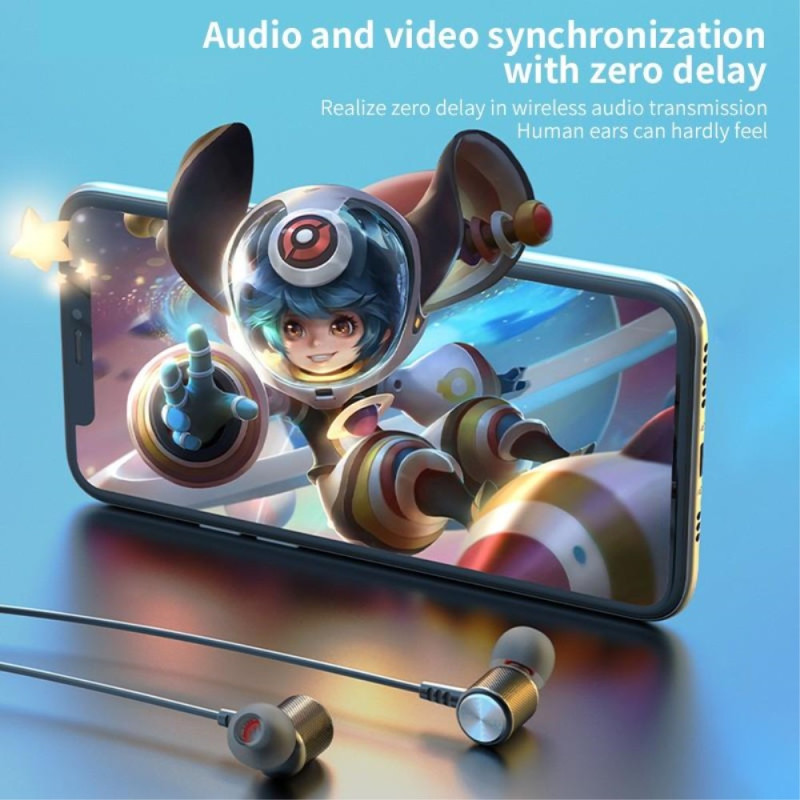 Mit diesen kabellosen Ohrhörern mit Nackenbügel können Sie Ihre Musik und Anrufe über den Controller steuern.