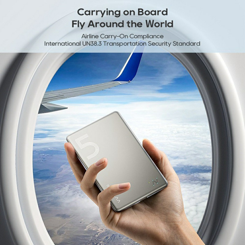 The combination of minimalist elegance and magnetic strength defines this new segment of portable power supplies. At just 7.2mm thick, this 5000mAh External Battery is the thinnest in its class, making it easy to carry discreetly. Its aluminium alloy and tempered glass case offers a smooth feel and superior strength. Integrated N52 magnets ensure ultra-stable attachment and precise alignment. It delivers a wireless charge of up to 15W and a fast 20W wired charge. What's more, it's approved for air transport and complies with European CE standards.