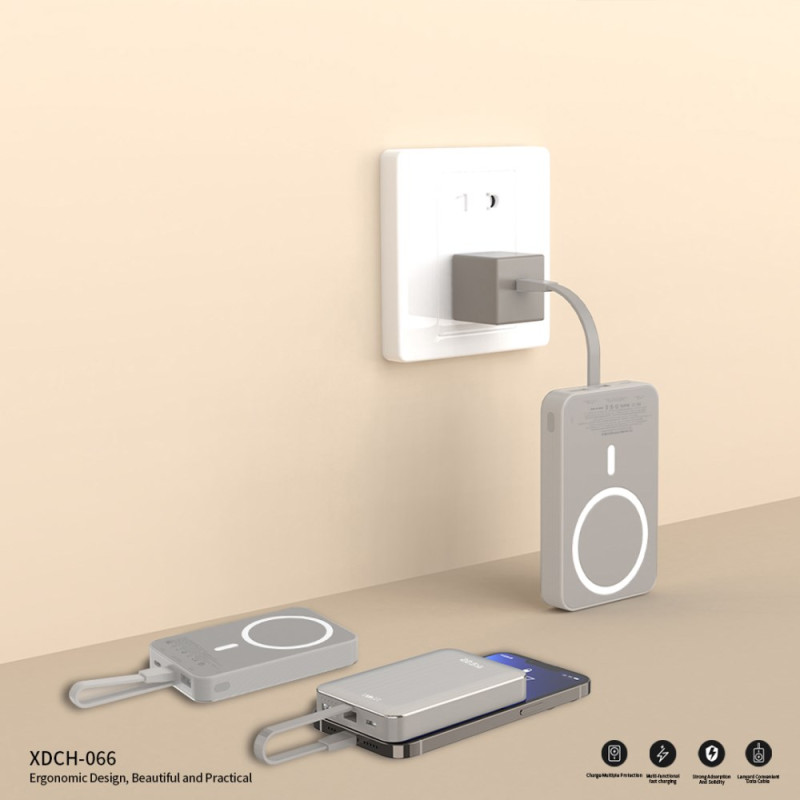 This external magnetic battery combines power and versatility to take your smartphone anywhere. Its 10000mAh capacity provides a comfortable energy reserve, while the 22.5W fast charge ensures efficient recharging of compatible devices. The magnetic holder ensures a secure hold during wireless charging. With USB-A and Type-C outputs and an integrated cable, it can power several devices at once, all in a practical format with an indicator light to keep track of battery levels.