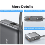 This USAMS external battery combines power and practicality in a compact format designed to accompany you wherever you go. Its 10000mAh capacity means it can be recharged several times, while 20W technology ensures fast, safe power for compatible devices. Integrated Type-C and Lightning cables mean there's no need to carry extra accessories, and the three available ports mean you can charge several devices simultaneously. The LED display clearly shows the percentage of charge remaining, making it easy to keep track immediately.