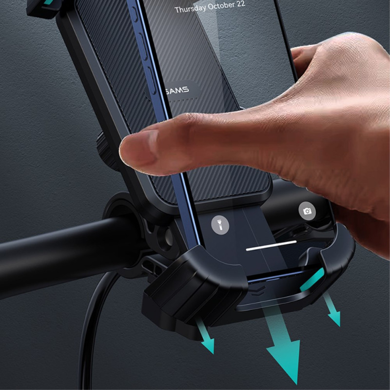 Immediate access to navigation and security are assured by this USAMS mount, designed to withstand the bumps and bruises of the road. The one-click locking mechanism ensures instant attachment of the smartphone (4.7 to 6.7 inches) to the handlebar, with no risk of loosening. Made from PC and silicone, it offers both durability and vibration absorption. Its 360-degree swivelling head allows optimum adjustment of the viewing angle, and its intelligent design preserves access to the screen's buttons and functions.