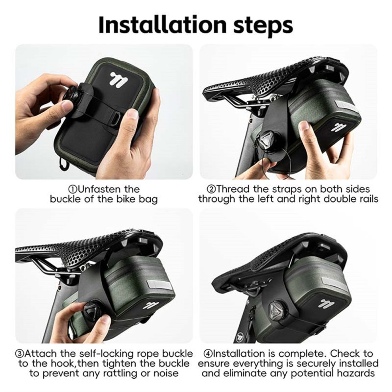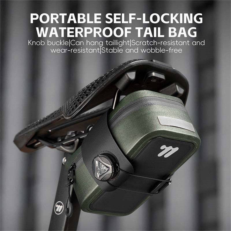 Keeping your tools secure, even in extreme terrain, is the main mission of this saddlebag. Made from 600D polyester and TPU, it uses seamless welding technology to guarantee a total seal against moisture. The innovative self-locking mechanism ensures a firm hold on the saddle rail, preventing accidental detachment. Installation and removal is quick thanks to its rotating buckle design. Despite its compact size (0.5L), it offers optimised space for repair kits and essentials, maintaining an aerodynamic profile.