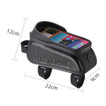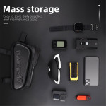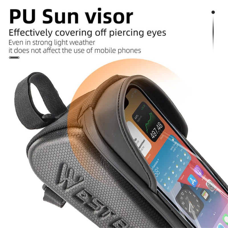 Designing smooth navigation and immediate access to tools is the main aim of this quick-release pannier. Made from a blend of EVA, leather and polyester, this unit offers water-repellent protection and resistance to wear and tear. Its TPU touch film allows the phone (up to 6.8 inches) to be used for GPS, and the integrated sun visor increases clarity in bright light. The bag has a capacity of 0.8 litres, enough for an external battery and a repair kit. The quick-fit system on the top tube ensures instant installation and removal.