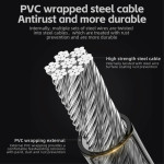 Reliable protection of your possessions against theft is ensured by the multi-material design of this anti-theft device. It combines a precision-moulded zinc alloy locking head with a high-strength steel inner cable, providing a solid structure. The PVC composite outer casing provides effective protection against rain and corrosion, while the ABS plastic case is impact-resistant. Its featherweight of 313g makes it easy to carry. With an overall length of 115cm, it's ideal for securing bicycles, electric scooters or glass doors to fixed objects.