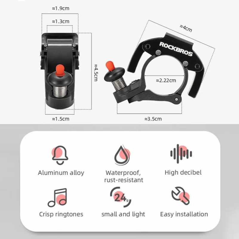 The integration of an audible safety device must not compromise the ergonomics or operation of the steering controls. This ROCKBROS bell, with its compact design, fits discreetly on the handlebars, freeing up space for the brakes and shifters. It emits a powerful sound, reaching 90 to 100dB, essential for signalling your presence on a mountain bike or on the road. Its construction is a durable alloy of stainless steel and aluminium, guaranteeing excellent corrosion resistance. The slightly curved shape makes operation easy and effortless. Its featherweight of 24g ensures minimal impact on handling.