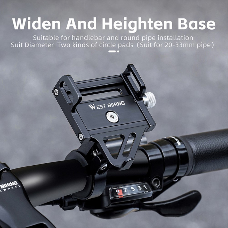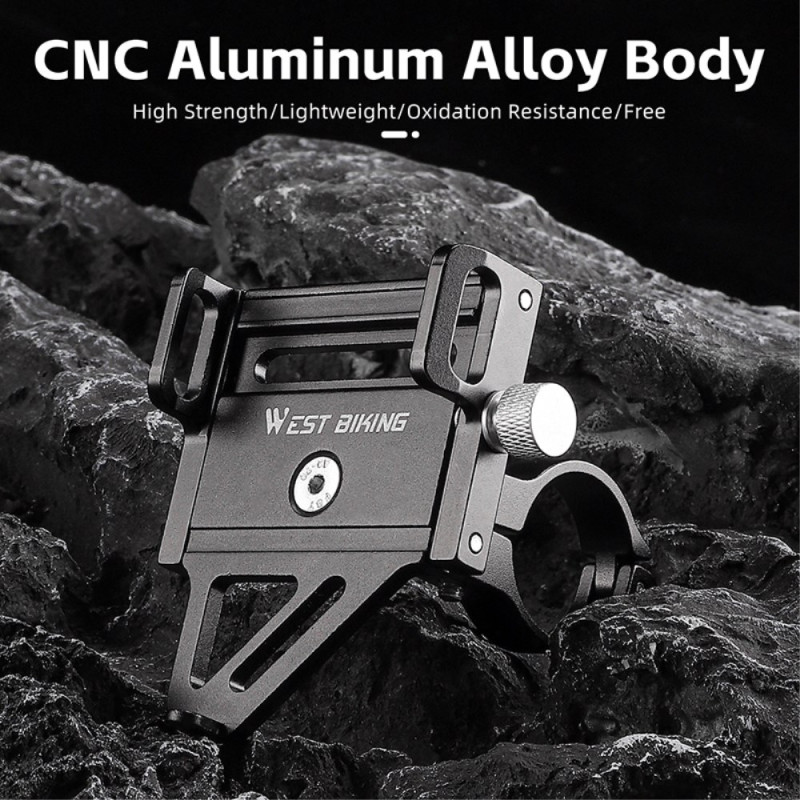 CNC machined aluminium alloy gives this phone holder unrivalled durability, lightness and resistance to oxidation. Weighing just 109.4g, this WEST BIKING device is designed to secure phones from 55mm to 100mm wide. The clever design maintains access to the side buttons and charging port. The wide, high base fits securely over 20mm to 33mm round tubes. Thanks to the 6mm screw adjustment, the mounting angle can be optimised for maximum stability and visibility on all types of bike.