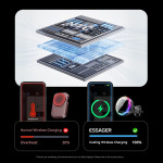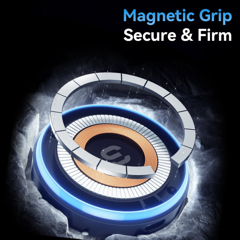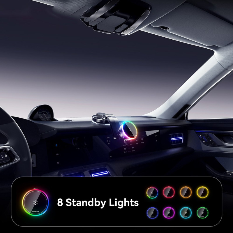 Innovative 15W magnetic cordless charger with advanced TEC cooling system and high-speed fan. Easy installation on ventilation grille, 360° rotation for optimum positioning. Fast, safe charging with LED indicator.