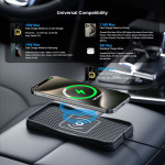 Wireless car charger offering fast charging up to 20W. Features a non-slip silicone pad to keep your phone secure while driving. Easy to install without modifying the vehicle, with 1 metre cable.