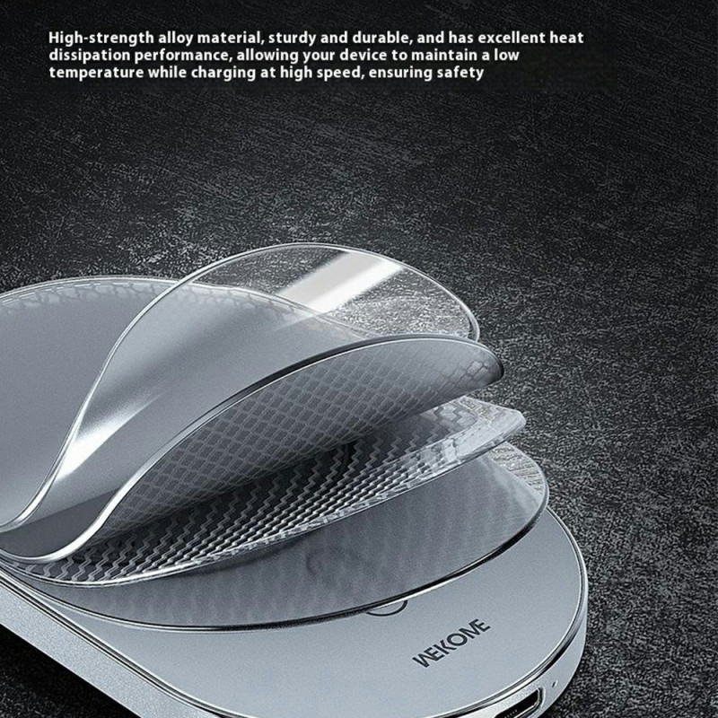 Discover the WEKOME magnetic wireless charger holder for cars. Enjoy fast charging of up to 15W, 360° rotation and an ultra-powerful N52 magnetic mount. Easy to install on a ventilation grille.
