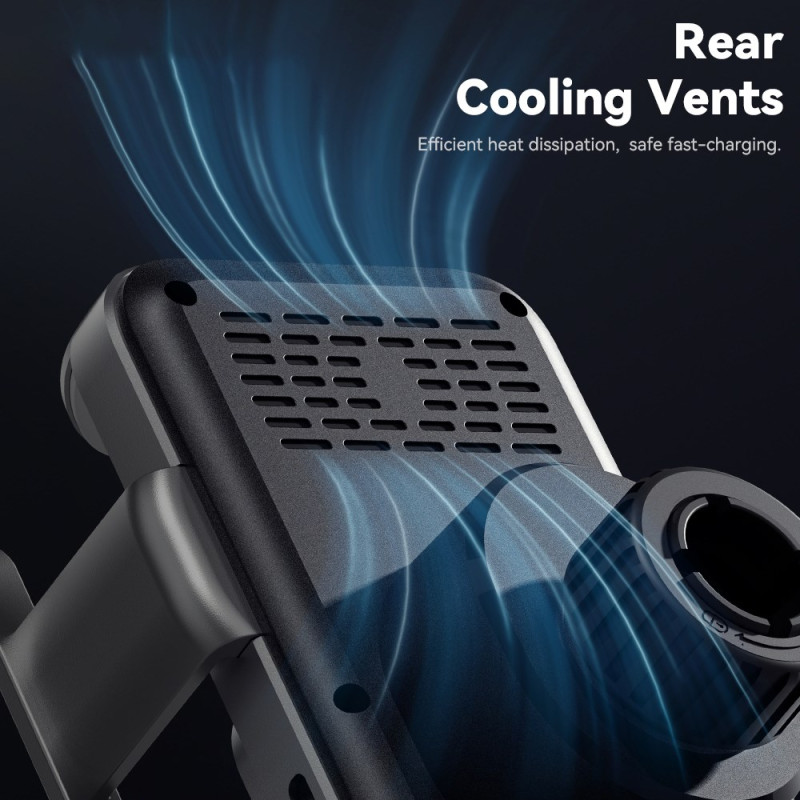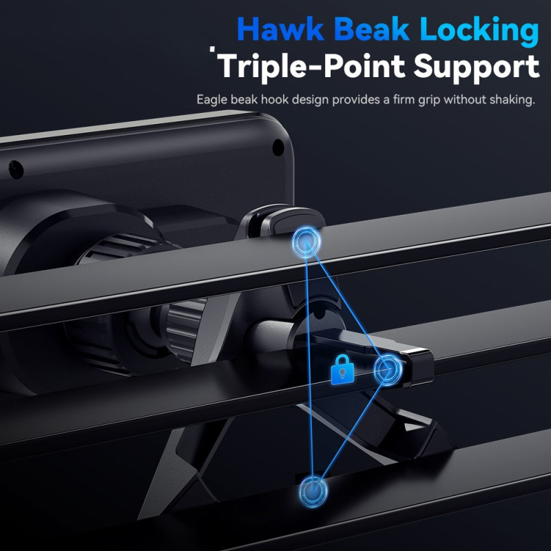 Discover the ESSAGER phone holder with 15W wireless charger. Stable triangular design, easy rotation, built-in 150mAh battery for 500 cycles. Eagle claw clip for secure attachment to ventilation grille.
