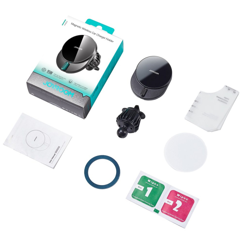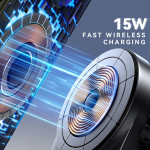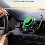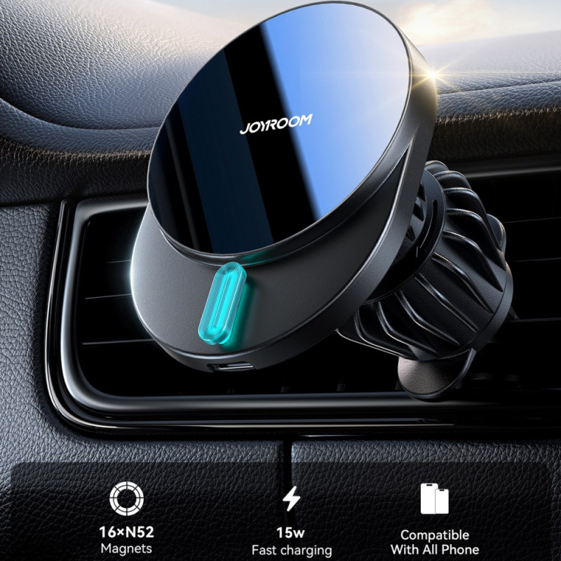 Charge your smartphone in complete safety with this 15W wireless magnetic holder. Securely attaches to a ventilation grille, rotates 360° and automatically aligns for fast, efficient charging. One-hand operation for added convenience.