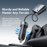 Transformez votre voiture en station de charge haute performance avec ce hub 150W intelligent. Profitez de 5 ports USB (2 USB-C + 3 USB-A) et 2 prises allume-cigare pour alimenter simultanément tous vos appareils. Distribution intelligente de l'énergie.