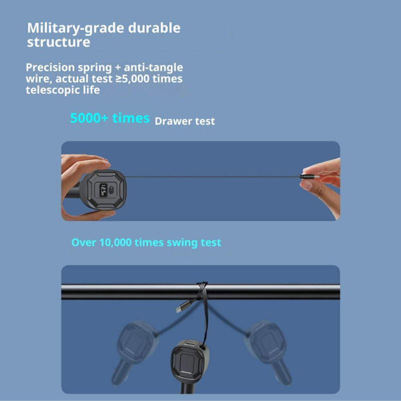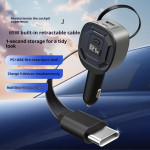 High-performance car charger with dual fast charge ports (65W PD + 18W USB-A) and 78cm retractable cable. Real-time LED battery voltage display for safe charging. Compatible with all 12V-24V vehicles.