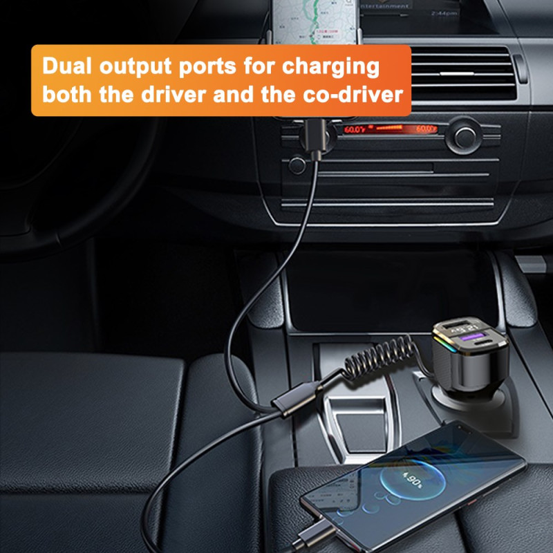High-performance car charger with 30W PD fast charge and 1.2m Type-C spiral cable. Coloured LED light for easy location in the dark. Compatible with all your devices: iPhone, Samsung, Xiaomi, Huawei and tablets.