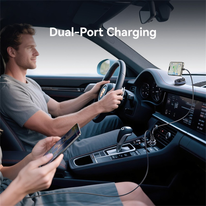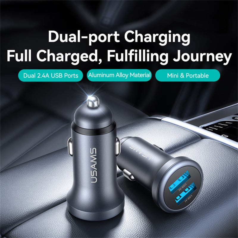 Quickly charge your devices on the move with this compact USAMS car charger. Equipped with two 2.4A USB ports, it can charge several devices simultaneously.