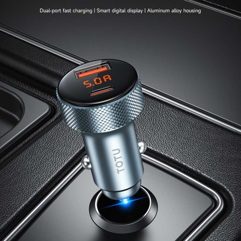 Charge your devices on the move with the TOTU CC-4 car charger. Enjoy 48W of total power across two ports (USB-A 18W + Type-C 30W PD) for ultra-fast, simultaneous charging of your smartphones, tablets and laptops.