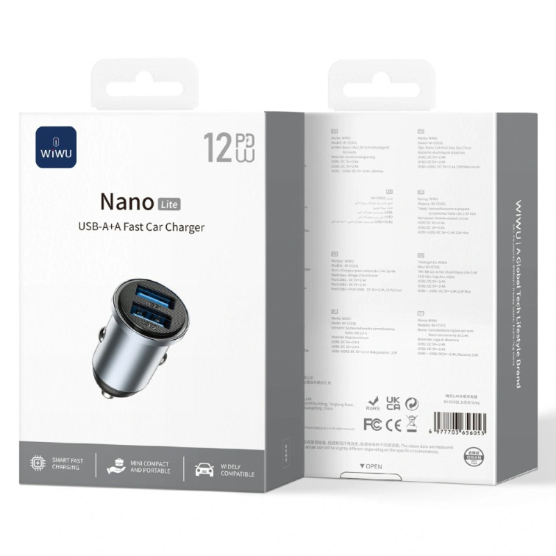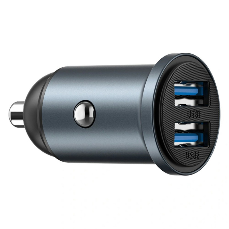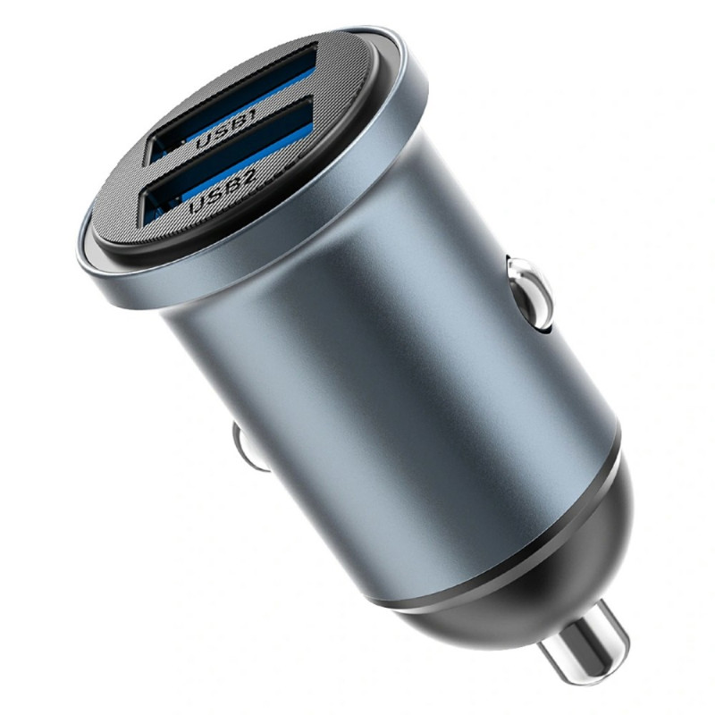 Compact car charger with dual USB QC3.0 ports offering intelligent fast charging up to 12W. Elegant, discreet design that blends in perfectly with your dashboard. Compatible with most devices and fast charging protocols.