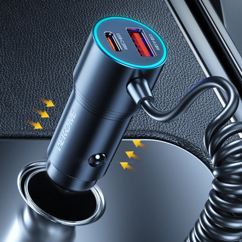 Enjoy ultra-fast 66W charging on the move with this smart car charger. Featuring an integrated 1.5m retractable Type-C cable, multiple USB-A and USB-C ports, and advanced protection for your devices. Compatible with all vehicles.