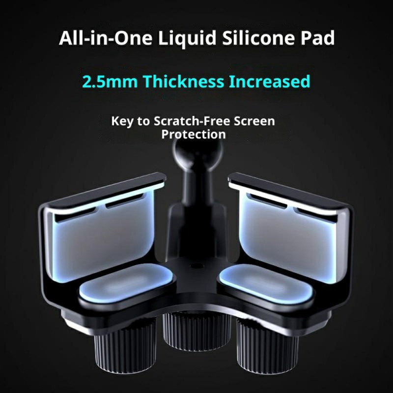Ultra-stable car phone holder with heat-resistant base and dual-button fastening system. Fits all dashboards and protects your device with soft silicone pads. Compatible with screens from 6mm to 25mm for safe and comfortable navigation.