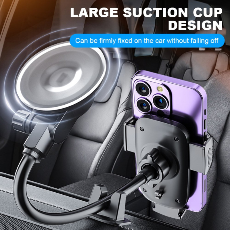 Universal car phone holder with powerful suction cup and flexible, extendable arm. Rotates 360° for optimum viewing angle. Compatible with all smartphones from 4.7 to 7 inches. Easy installation on windscreen or dashboard.
