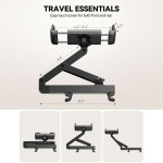 Innovative shelf support for headrest with extendable double-axis structure for exceptional stability. Adjustable, foldable design with secure locking system. Quick installation thanks to the double spring structure. Multi-angle adjustment for optimum viewing comfort. Compatible with devices from 4.7 to 13 inches and headrest spacing from 70 to 158mm.