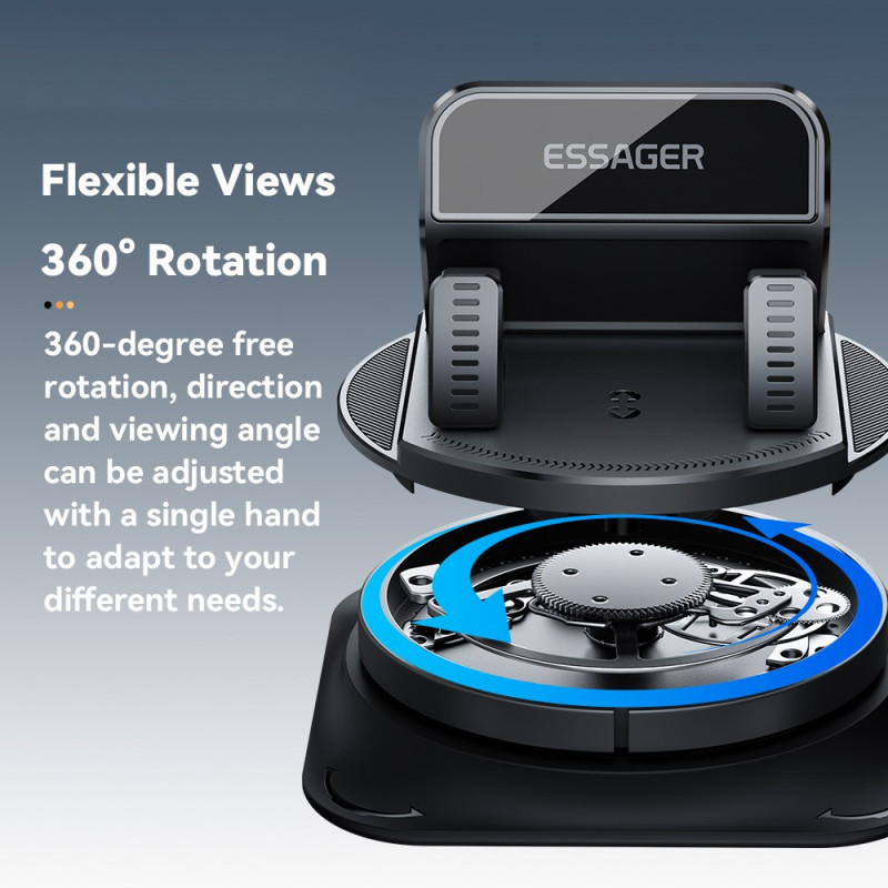 Optimum positioning of the navigation device on the centre console is essential for the driver's active safety. This ESSAGER mount uses a strong adhesive to ensure reliable attachment to a variety of surfaces. The 360-degree swivel head allows full adjustment, making it easy to switch between portrait and landscape modes. The design has been thought out for one-handed operation, minimising distraction while driving. Made from durable ABS plastic and protective silicone, it holds devices from 7mm to 17mm thick securely.