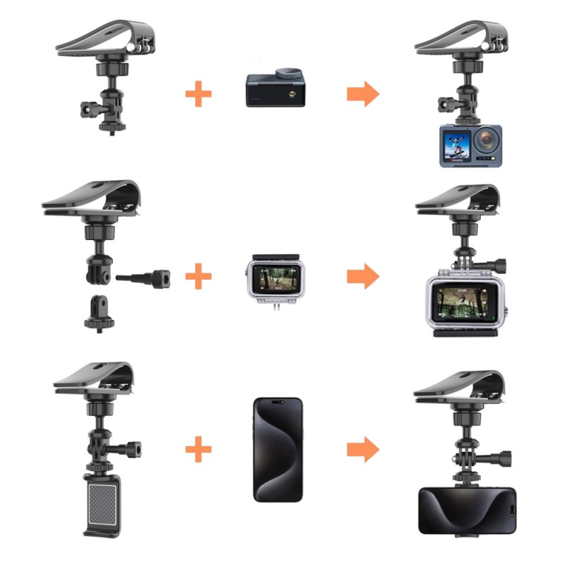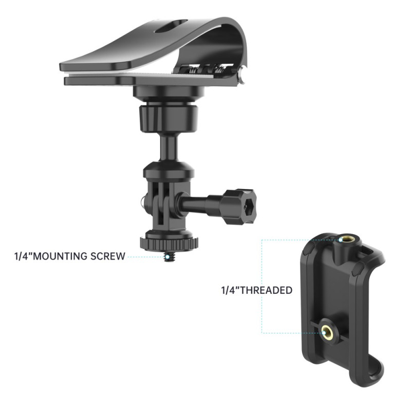The Universal Car Visor Mount lets you securely mount your smartphone or camera without obstructing visibility. Its sturdy clip attaches securely to the sun visor, providing a stable installation with no risk of damaging the surface. Thanks to its 360° swivel and 180° tilt, you can enjoy an ideal viewing angle when navigating or taking photos. Compatible with smartphones from 5.5 to 8.5 cm wide and cameras with a standard 1/4" thread, it installs easily in seconds for safer, more convenient driving.