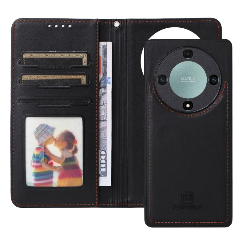 Il comprend des fentes pour cartes et photos, un portefeuille intégré, une fonction de protection RFID et une sangle de poignet pour un transport facile.