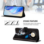 Stylish wallet case with charming butterfly and cat motif. Features a multi-angle adjustable holder, 3 card slots, secure wrist strap and reinforced drop protection.