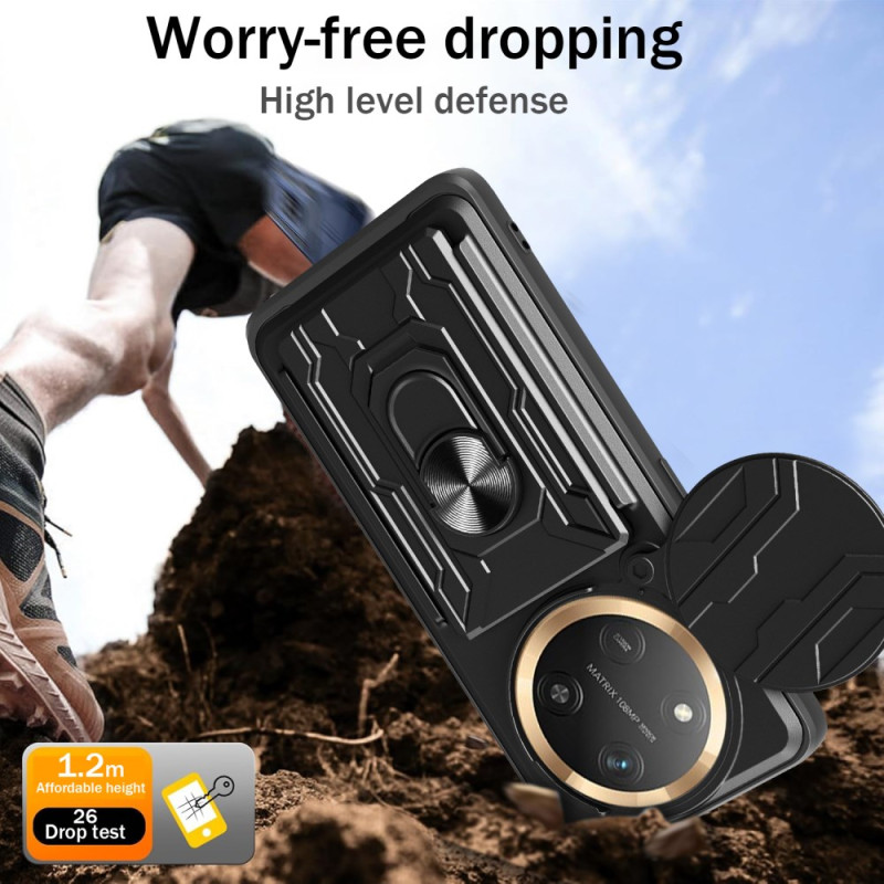 Protect your Honor Magic 7 Lite / X9c in style with this multifunction case featuring a retractable metal kickstand, an integrated card holder and a protective slider for the camera lens. Magnetic car mount compatible.