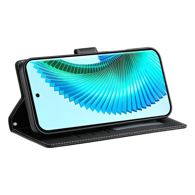 Elegant and practical wallet case for your Honor Magic 8 Lite 5G. Refined design with lychee texture, secure magnetic closure, card and cash slots. Hand strap included for easy carrying.