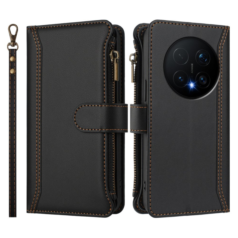 Multifunction wallet case for Honor Magic 8 Pro 5G with 9 card slots, zipped pocket, integrated stand and practical hand strap. Complete protection and everyday elegance for your smartphone.