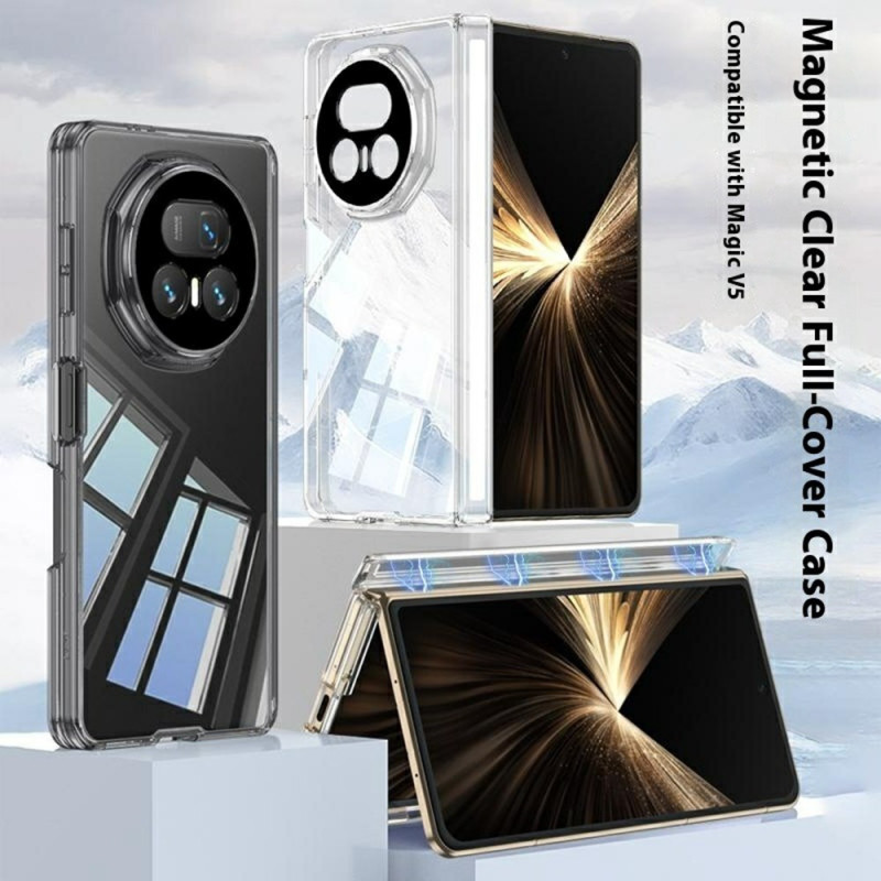 Discover our full protective case for Honor Magic V5 5G. Made from durable TPU, it offers complete protection against drops and scratches while preserving the original aesthetics of your device. Its magnetic hinge design ensures a perfect fit and protects the folding mechanism.