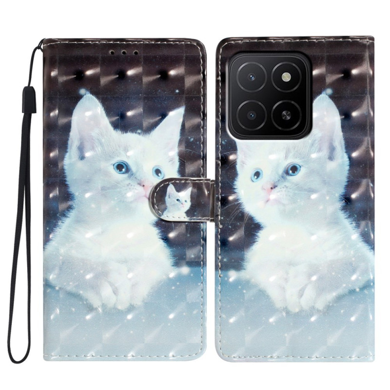 Protégez votre Honor X5b / X5b Plus avec élégance grâce à cet étui portefeuille au charmant motif chat blanc en 3D. Conception premium avec support intégré, fermeture magnétique sécurisée et multiples compartiments pour cartes et argent. Dragonne incluse.