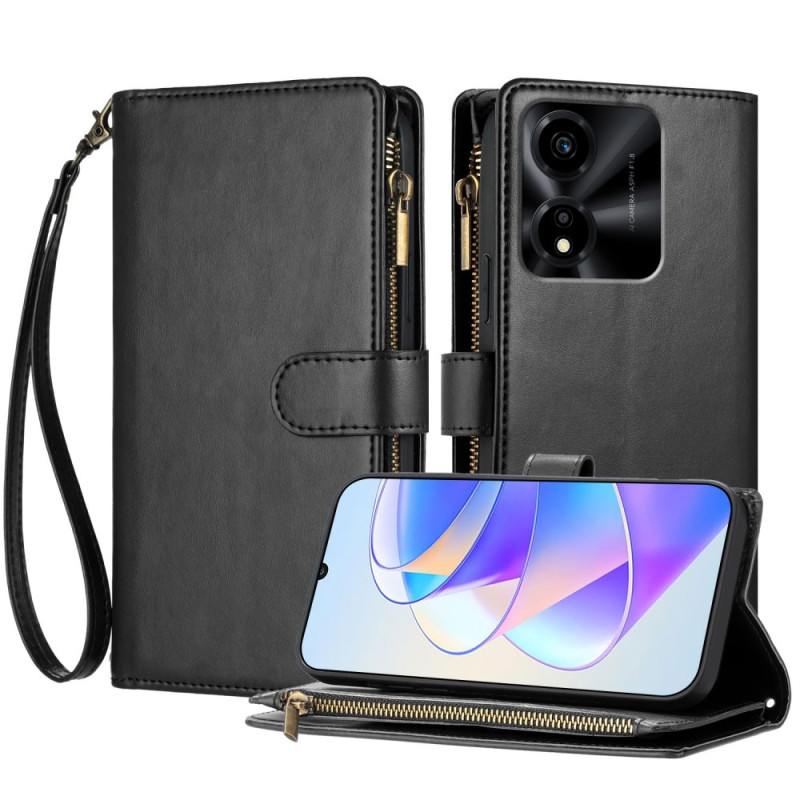 Discover our leather wallet case for the Honor X5c Plus. With its elegant, functional design, it offers optimum protection against knocks and bumps, practical storage space for your cards and money, and a stand function for hands-free viewing. The magnetic clasp and detachable hand strap add practicality and security to your everyday use.
