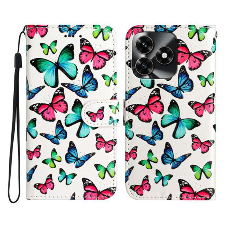 Elegant wallet case with butterfly motif for Honor X5c Plus. Sophisticated design with full protection, adjustable stand, 3 card slots, side pocket and detachable hand strap. Secure magnetic closure.