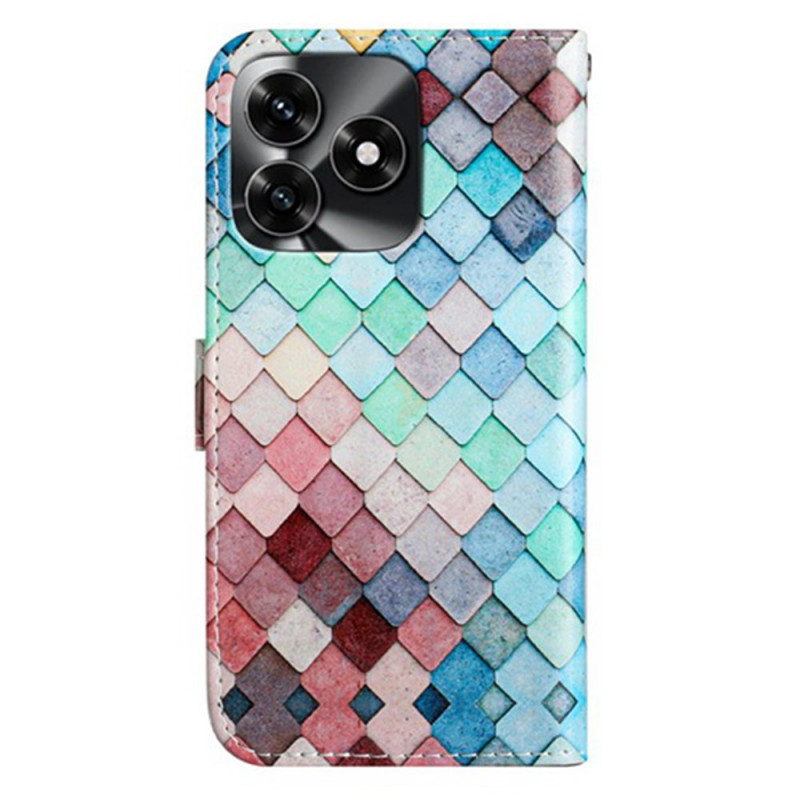 Stylish wallet case with printed grid pattern for Honor X5c Plus. Offers full protection, 3 card slots, multi-strap support and secure magnetic closure. Comes with detachable hand strap for easy carrying.