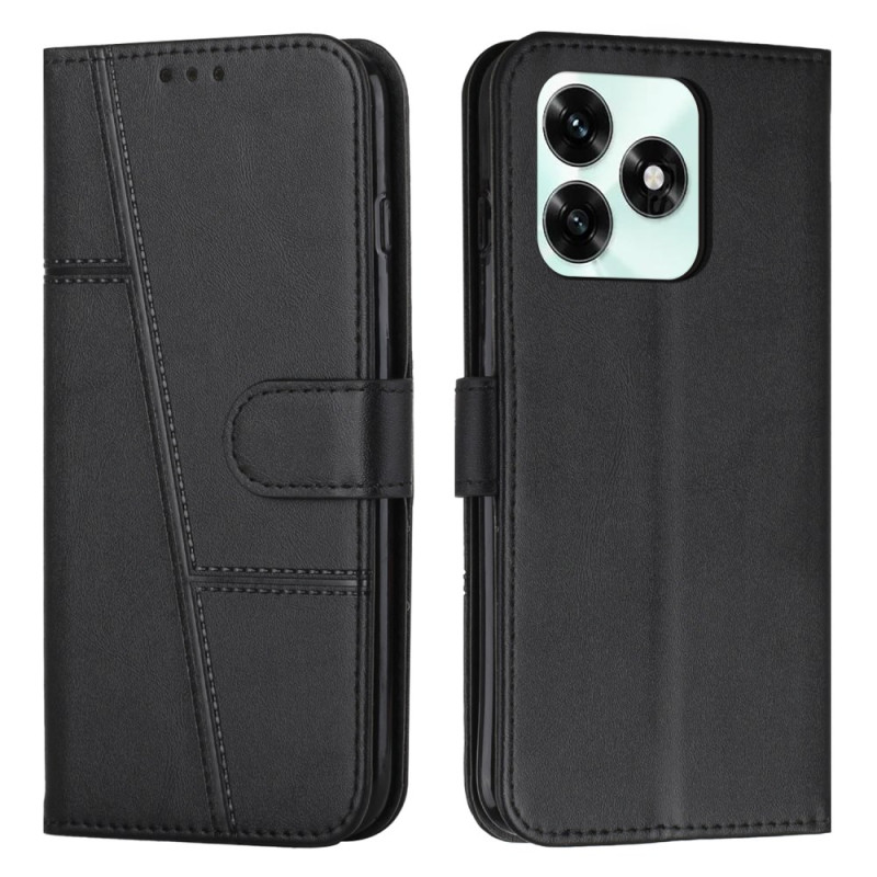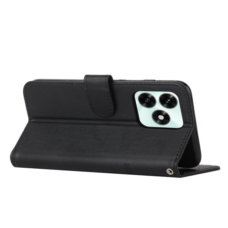 Elegant wallet case in textured PU leather for Honor X5c Plus. Features 2 card slots, 1 photo pocket and a ticket holder. Foldable stand for hands-free viewing. Secure magnetic closure and wrist strap included for easy carrying.